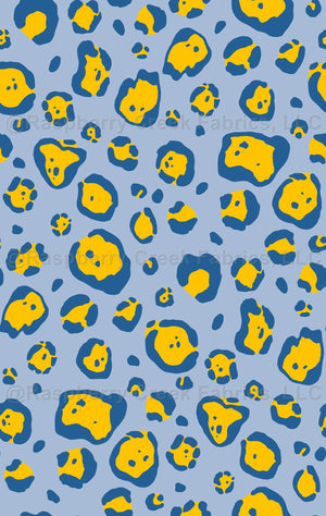 Abstract leopard or jaguar spots in the colors of a yellow, light and dark blue.