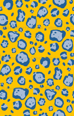 Leopard or jaguar spots in the colors of a blue ringed octopus yellow, light and dark blue.