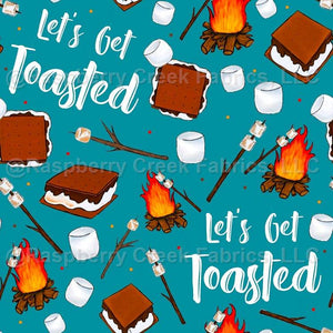 Let's Get Toasted Funny Campfire S'Mores on Turquoise Blue