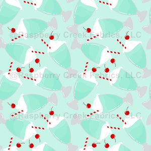 "Light Blue Ice Cream Sundaes" is a refreshing and delightful seamless pattern featuring illustrations of tempting ice cream sundaes topped with light blue toppings and sprinkles. This charming design captures the whimsical and summery essence of enjoying frozen treats, making it perfect for projects that evoke feelings of joy, relaxation, and sweet indulgence during sunny days.