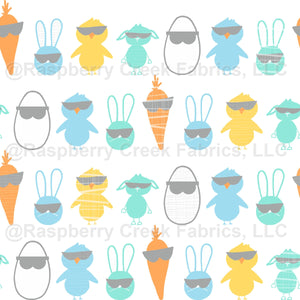 Light Blue Mint Grey Yellow and Orange Cool Easter Friend Print Fabric, By Elise Peterson