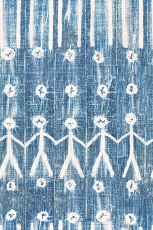 Light blue Shibori dyed, blue and white, Indigo blue, stick people, Primitive, hand dyed look, novelty denim, blue denim tie dye, ethnic design, casual style