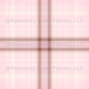 A very light, pale pink plaid pattern with light ocher and tan browns. This plaid is designed with soft (fuzzy looking) lines, and is not crisp like a traditional plaid.