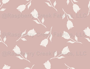 Light pink rose buds on a dusty pink color background, Tranquility collection
