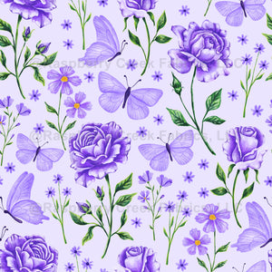 Lilac Light Purple Roses Florals And Butterflies on Purple