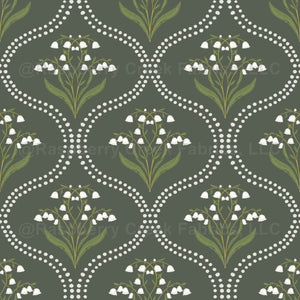 Lily of the Valley Ogee Dark wallpaper design by Lisee Ree | floral ogee pattern in hunter green