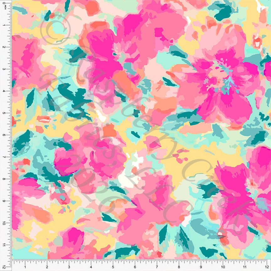Lipstick Peacock Yellow Abstract Floral, Sunny by Diana Rammell for CLUB Fabrics