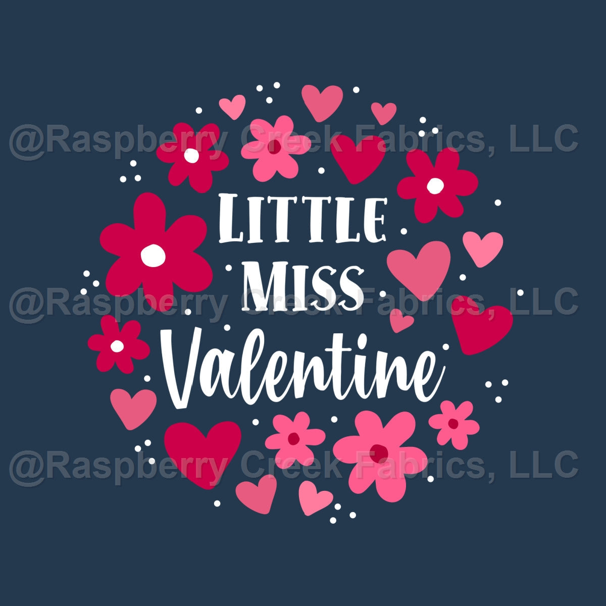 Little Miss Valentine Hearts and Flowers Panel on Navy