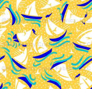 Playful sailboats frolic with seagulls joining in on the Summer fun. Many more colors available.