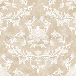Lotus and Leaves Damask on Creamy Beige / Damask Collection