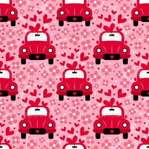 Love Bug Little Red Valentine Cars Hearts and Flowers on Pink