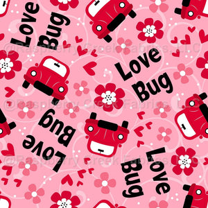 Love Bug Little Red Valentine Cars Hearts and Flowers on Pink