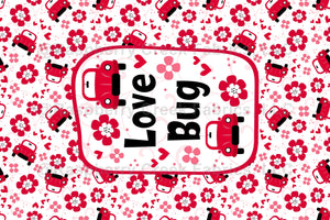 Love Bug Little Red Valentine Cars Hearts and Flowers Panel on White
