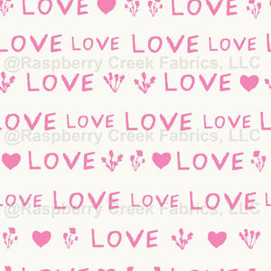 Cottage Love is a sweet typographic print perfect for ayoung one. Hand painted hearts and cottage flowers combined with the words makea delicate repeating stripe pattern. The white areas are a soft off white, nota stark bright white.