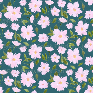 Lush Watercolor Light Soft Pink Flowers in teal blue background