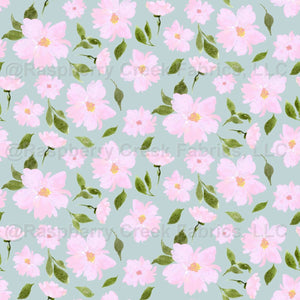 Lush Watercolor Light Soft Pink Flowers Pastel Blue Background