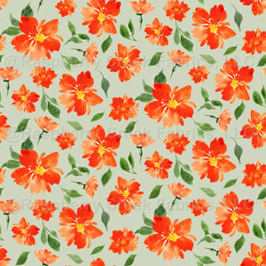 Lush watercolor orange blooms and fresh green leaves bold, expressive, hand-painted floral design.