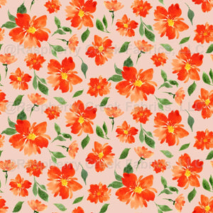 Lush watercolor orange blooms and fresh green leaves bold, expressive, hand-painted floral design.