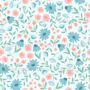 Part of my Lydia Collection | Floral with pink, blue and white flowers on a pastel blue background