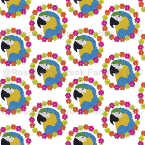 Macaw And Flowers White Background.