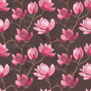 Magnolia on Brown Floral Block Print - Medium