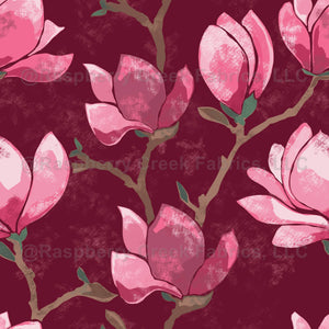 Magnolia on Red Floral Block Print - Wallpaper