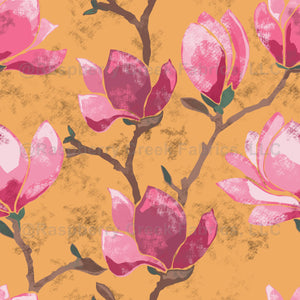 Magnolia on Yellow Floral Block Print - Wallpaper