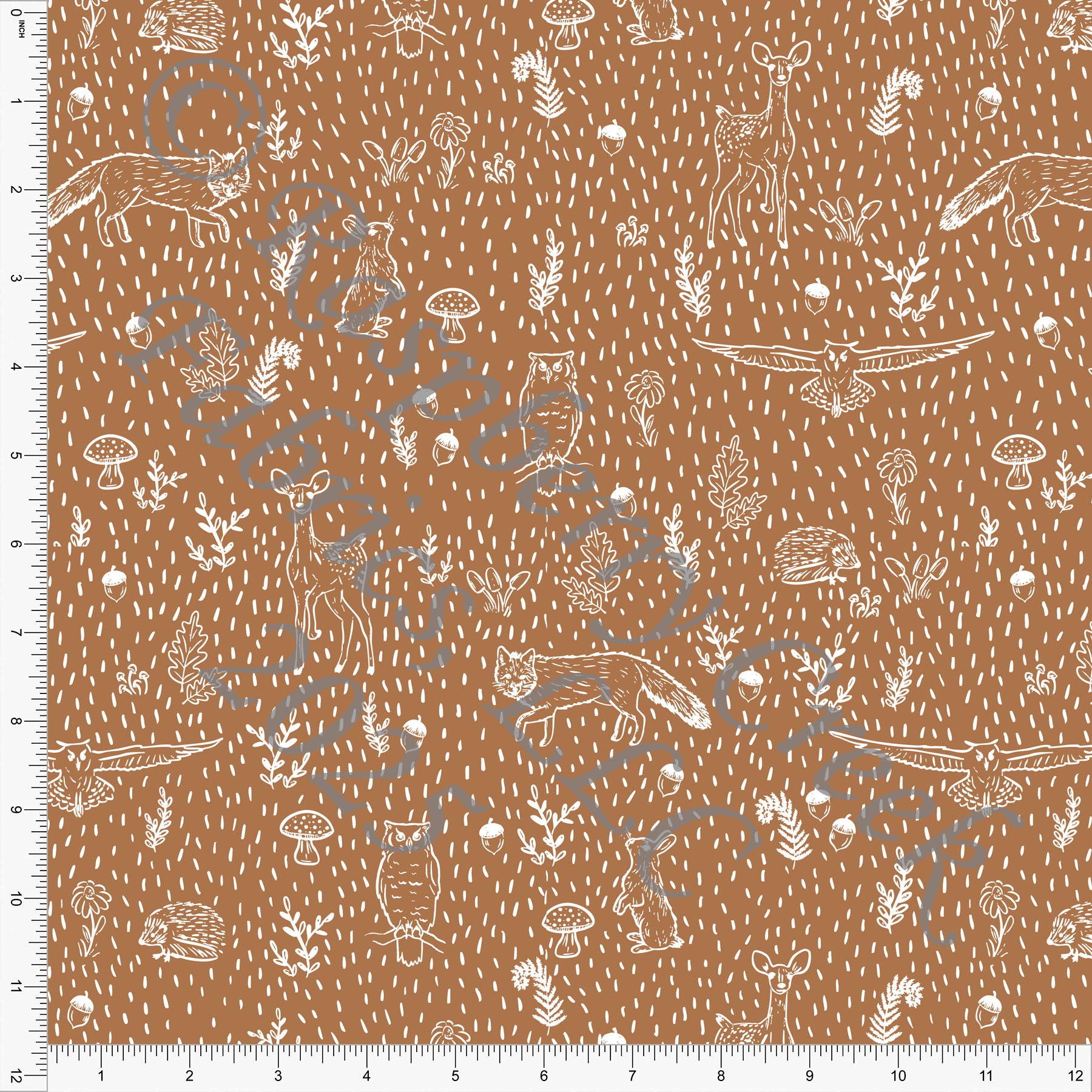 Owl Mushroom Deer Fox Bunny Main Deep Khaki Wandering Woodland by Kelsey Shaw for Fall 2025 CLUB Fabrics