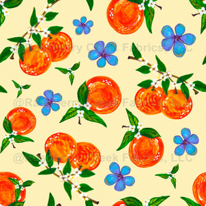 Marmalade-Oranges and Blue Blossoms on Yellow