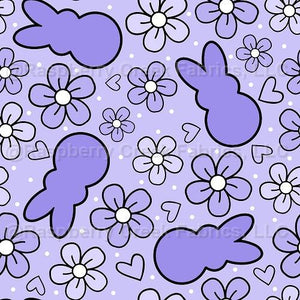 Marshmallow Easter Bunnies and Spring Flowers Lavender Purple