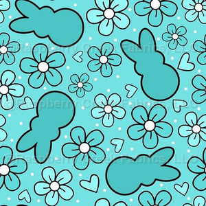 Marshmallow Easter Bunnies and Spring Flowers Turquoise and Aqua Blue