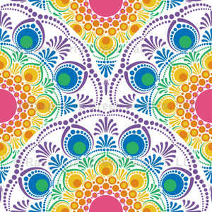 Enjoy 1920s elegance in our abstract Floral Fountain dot mandala in an art deco scallop pattern using colors from our Maximalist Rainbow palette.