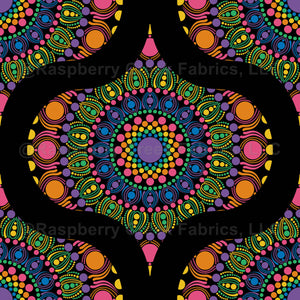 Retro vibes in our abstract floral Mardigras dot mandala in a mid century modern ogee pattern using colors from our Maximalist Rainbow palette.