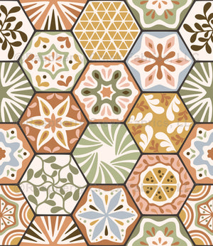 Mediterranean hexagon tiles backsplash - olive brown salmon