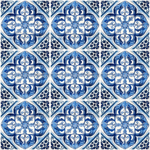 Elegant, stylish and sophisticated pattern with Mediterranean tiles in blue and white color. Modern and trendy, perfect for the Azulejo lover.