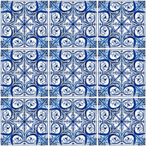 Elegant, stylish and sophisticated pattern with Mediterranean tiles in blue and white color. Modern and trendy, perfect for the Azulejo lover.