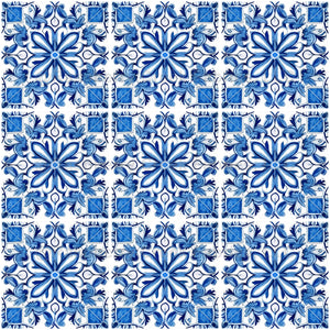 Elegant, stylish and sophisticated pattern with Mediterranean tiles in blue and white color. Modern and trendy, perfect for the Azulejo lover.