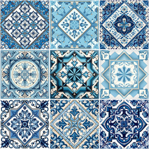 Elegant, stylish and sophisticated pattern with Mediterranean tiles in blue and white color. Modern and trendy, perfect for the Azulejo lover.