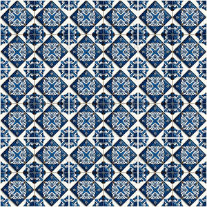 Elegant, stylish and sophisticated pattern with Mediterranean tiles in blue and white color. Modern and trendy, perfect for the Azulejo lover.