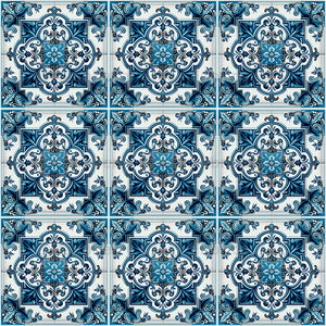 Elegant, stylish and sophisticated pattern with Mediterranean tiles in blue and white color. Modern and trendy, perfect for the Azulejo lover.