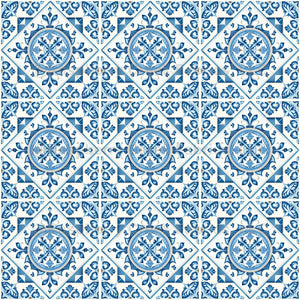 Elegant, stylish and sophisticated pattern with Mediterranean tiles in blue and white color. Modern and trendy, perfect for the Azulejo lover.