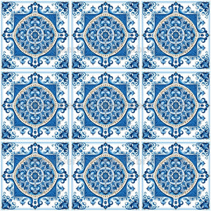 Elegant, stylish and sophisticated pattern with Mediterranean tiles in blue and white color. Modern and trendy, perfect for the Azulejo lover.