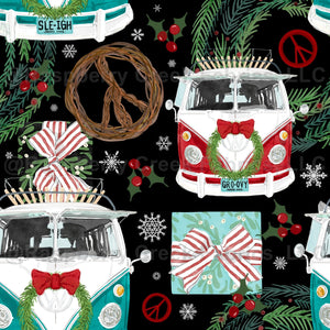 Merry, license plate, Christmas, retro, watercolor, cars, van, bus, Vw, groovy, peace, holiday, Christmas, wreath, red, green, black, peace