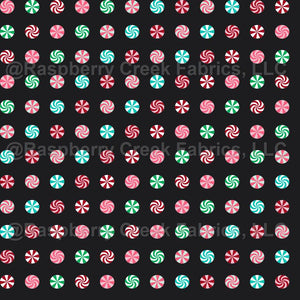 Mid-Century Modern Christmas / Holiday 2024 Peppermint Grid - Black Background
