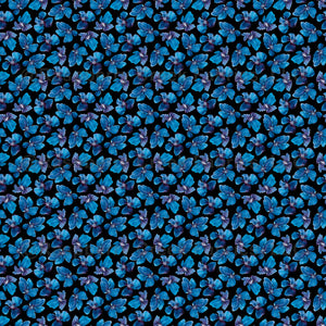 Boho floral blooms in jewel-tone blue and magenta watercolor on black. Spring, Summer, Winter, Garden, Fabric, Home Decor