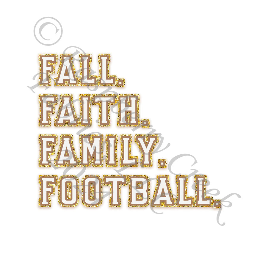 Milk Chocolate and Gold Sparkle Fall Faith Family Football Panel, Preppy Little Things by Bri Powell for CLUB Fabrics