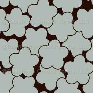 A subtle small-scale floral trellis in ash green grey tones with warm wood bark accents—perfect for quilting, nursery textiles, apparel, and understated modern rustic décor.