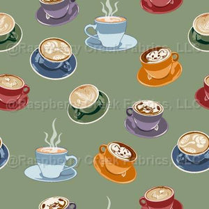 Mini Coffee Mugs and Latte Art on sage - Coffee Time Collection