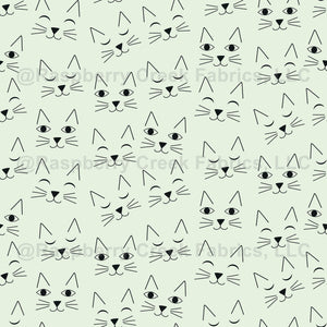 Minimalist Cat Faces Doodle black outline on white- Cats in the Garden collection