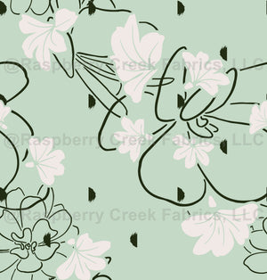 Part of the Naupaka Floral Wilderness collection. Mint green background. Off white half flowers with Naupaka leaves.